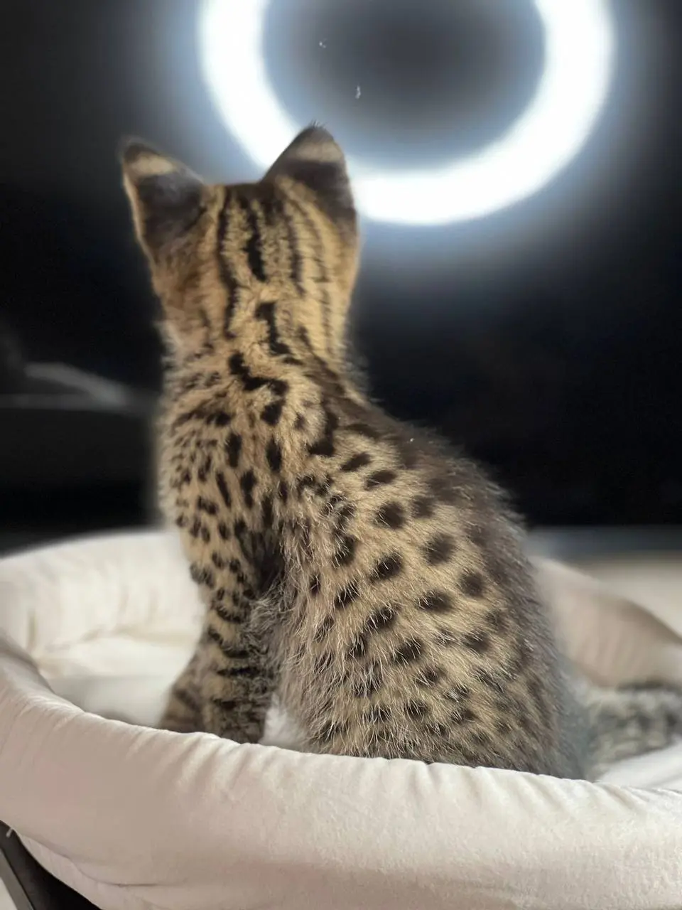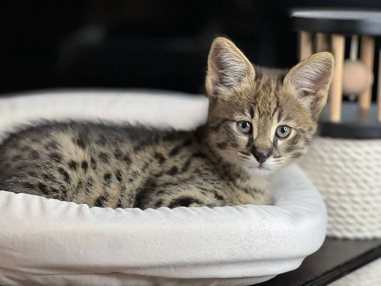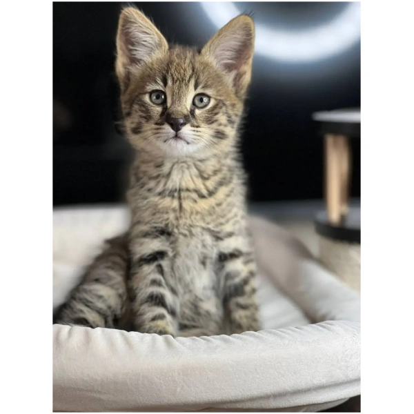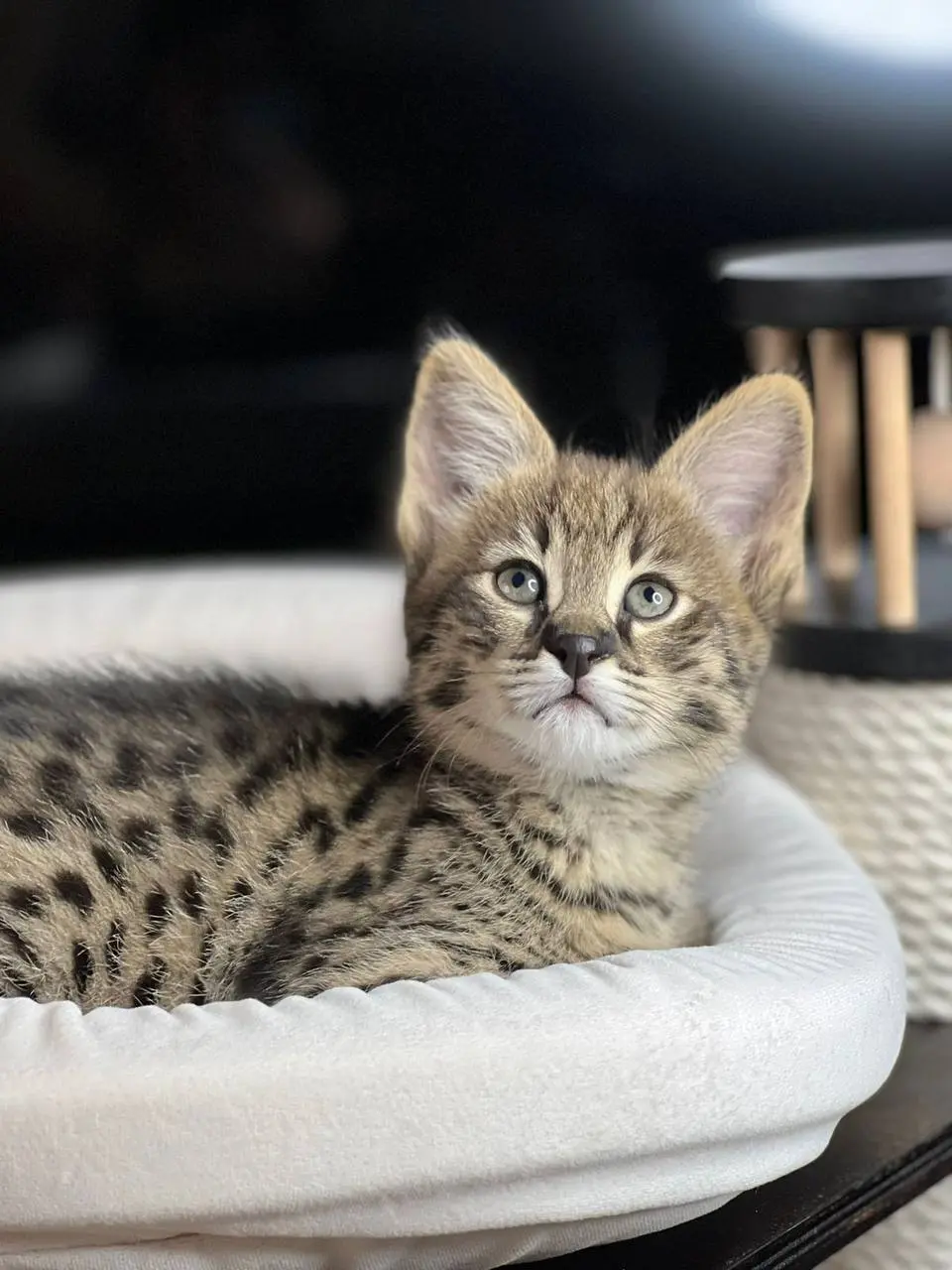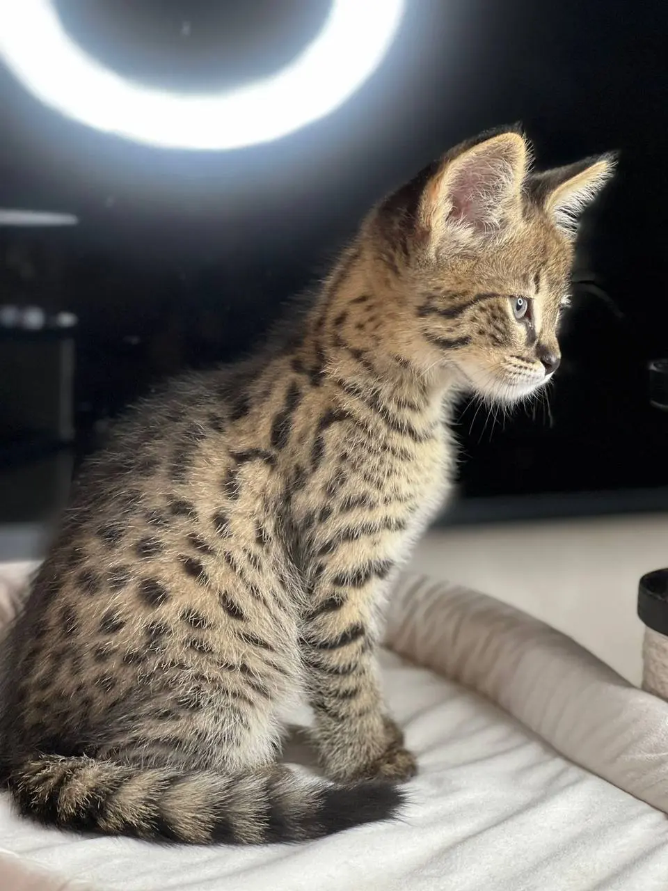 Her heritage is exceptional: daughter of a pure serval and a refined F3 Savannah mother.